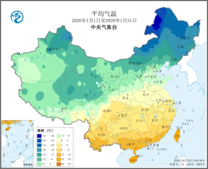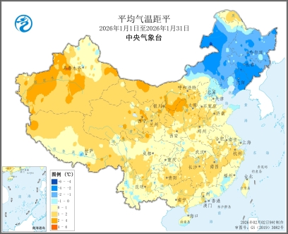 图1 全国平均气温及气温距平图(2026年1月1日至1月31日)