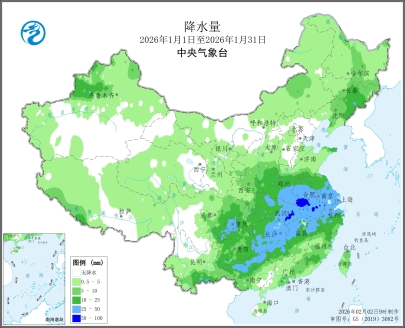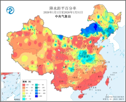 图2 全国降水量及降水距平百分率图(2026年1月1日至1月31日)