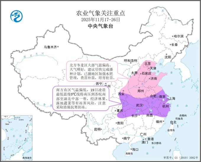 建议:北方冬麦区抓住晴好天气抢播冬小麦,做到应播尽播、宜早则早,提升播种质量。已播麦区加强苗期田间管理,培育壮苗。北方各地,特别是新疆、内蒙古、东北地区,注意做好设施棚圈加固和保温防寒工作。