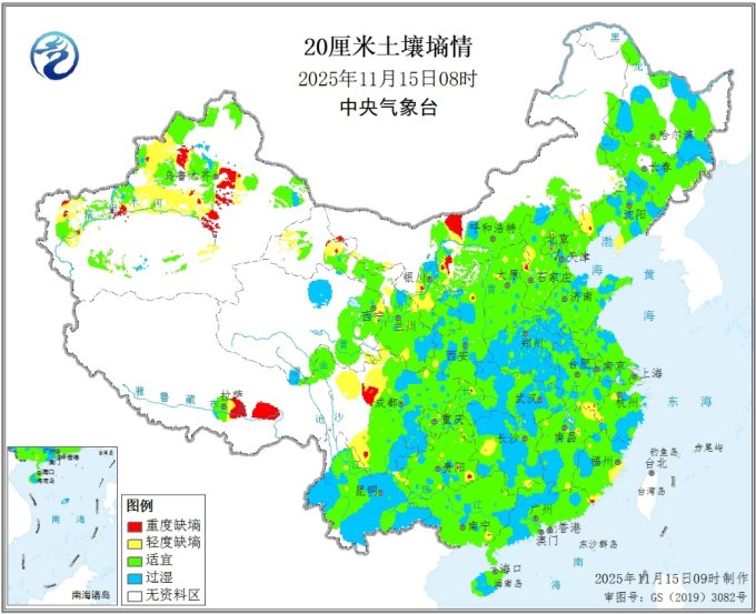 本周,受较强冷空气影响,新疆中北部、内蒙古中东部、东北地区出现2~3天雨雪天气,新疆西北部出现大到暴雪,对设施农业、畜牧业生产和秋粮储运产生不利影响。西北地区东部、华北、黄淮等地以晴到多云天气为主,气温偏高,利于土壤散墒及冬小麦播种出苗和已播小麦幼苗生长;但河南大部、安徽、江苏等地6-7日出现10~25毫米降水,不利农田散墒、整地和麦播,麦播进度短暂放缓。南方大部气温正常,光照偏少,雨日数有3~6天,累计雨量普遍有25~100毫米,降水利于江南等地土壤增墒和库塘蓄水,湘赣部分地区农业干旱有所缓解,但阴雨寡照导致西南部分地区土壤过湿持续或加剧,不利于小麦、油菜播种和幼苗生长,也影响柑橘等水果采摘上市;较强降水和阴雨天气也导致华南部分晚稻收晒受到一定影响。
