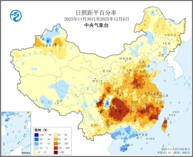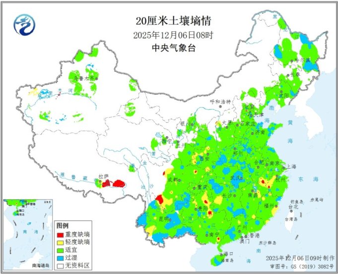 本周(2025年11月30日-12月6日),全国大部农区气温接近常年同期或偏高1~2℃,新疆北部、江汉大部、江南中部和西部、华南中部及河南南部等地偏高2~4℃;黑龙江北部、吉林东南部、辽宁东部、内蒙古中东部等地偏低1~4℃(图1)。全国大部农区无降水或降水量不足5毫米(图2),较常年同期偏少5~9成,仅广东西部、海南受台风影响,降水量有5~50毫米,局地有50~100毫米;东北地区北部、内蒙古东北部、新疆北部等地部分地区积雪深度为5~20厘米,局地20~50厘米(图3)。全国大部农区日照时数接近常年同期或偏多3成至2倍,仅广东西南部、广西南部、海南偏少3~8成(图4)。