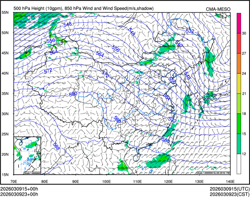 500hPa高度+850风场+850大风速(大于等于12)