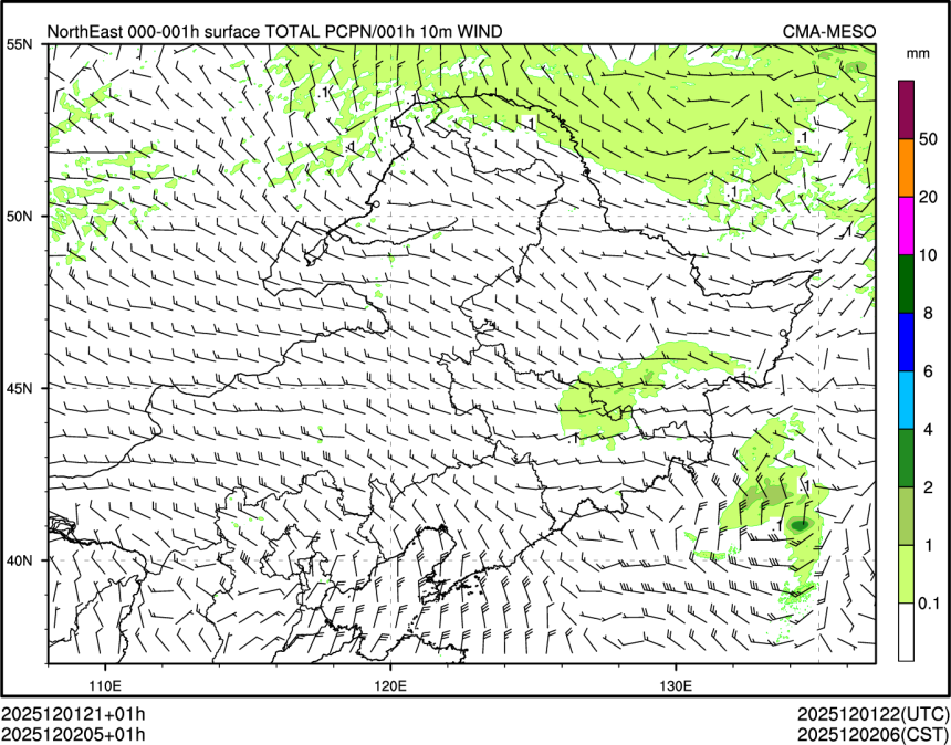 1h降水+10m风场