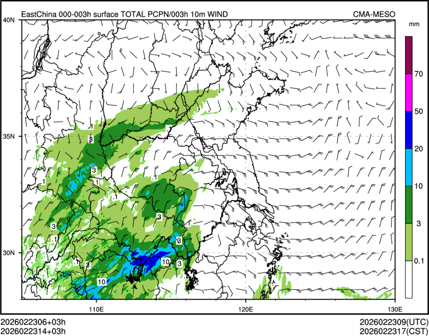 3h降水+10米风场