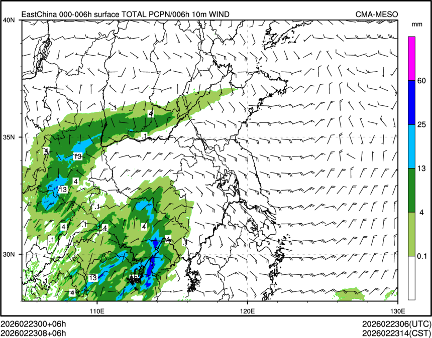 1h降水+10m风场
