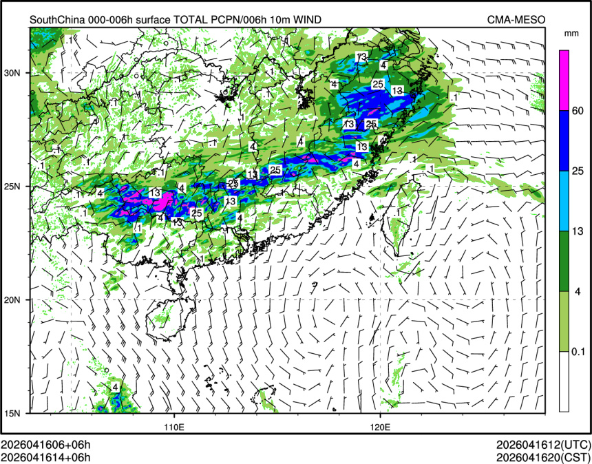 6h降水+10米风场