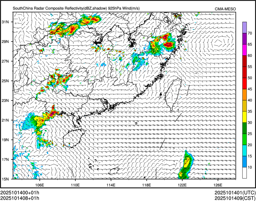 1h降水+10m风场