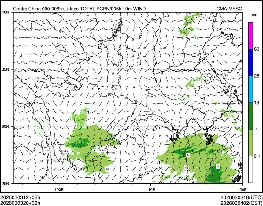 1h降水+10m风场