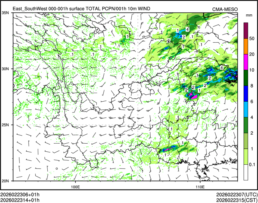 1h降水+10m风场