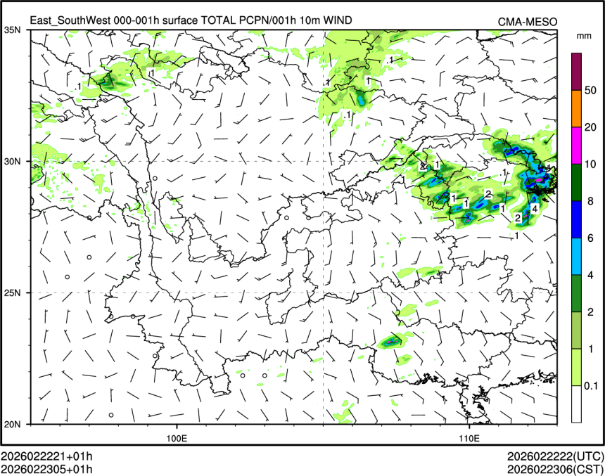 1h降水+10m风场