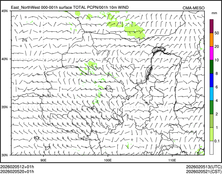 1h降水+10m风场