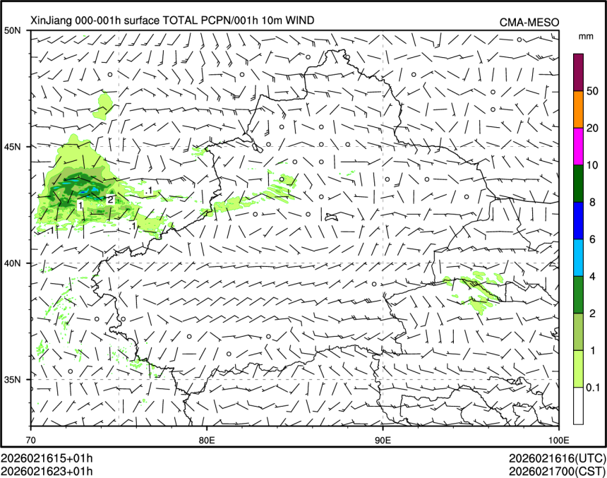 1h降水+10m风场
