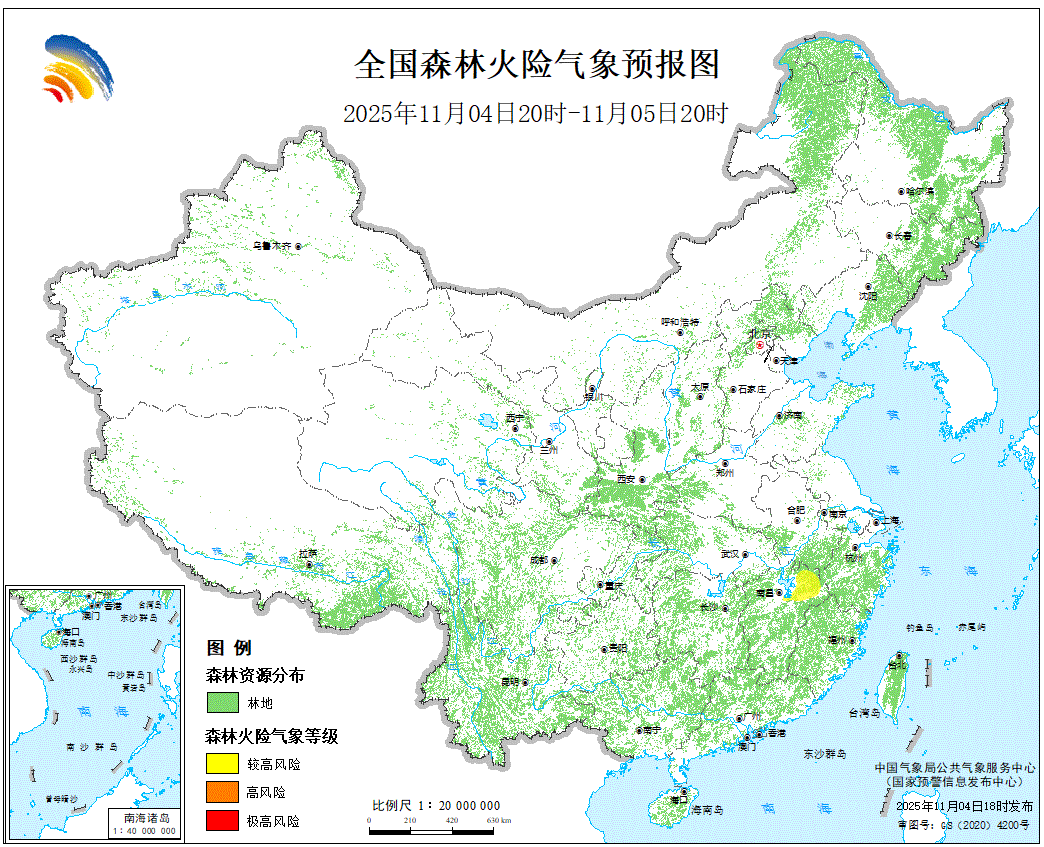 中国气象局公共气象服务中心(国家预警信息发布中心)11月4日18时发布森林火险气象预报