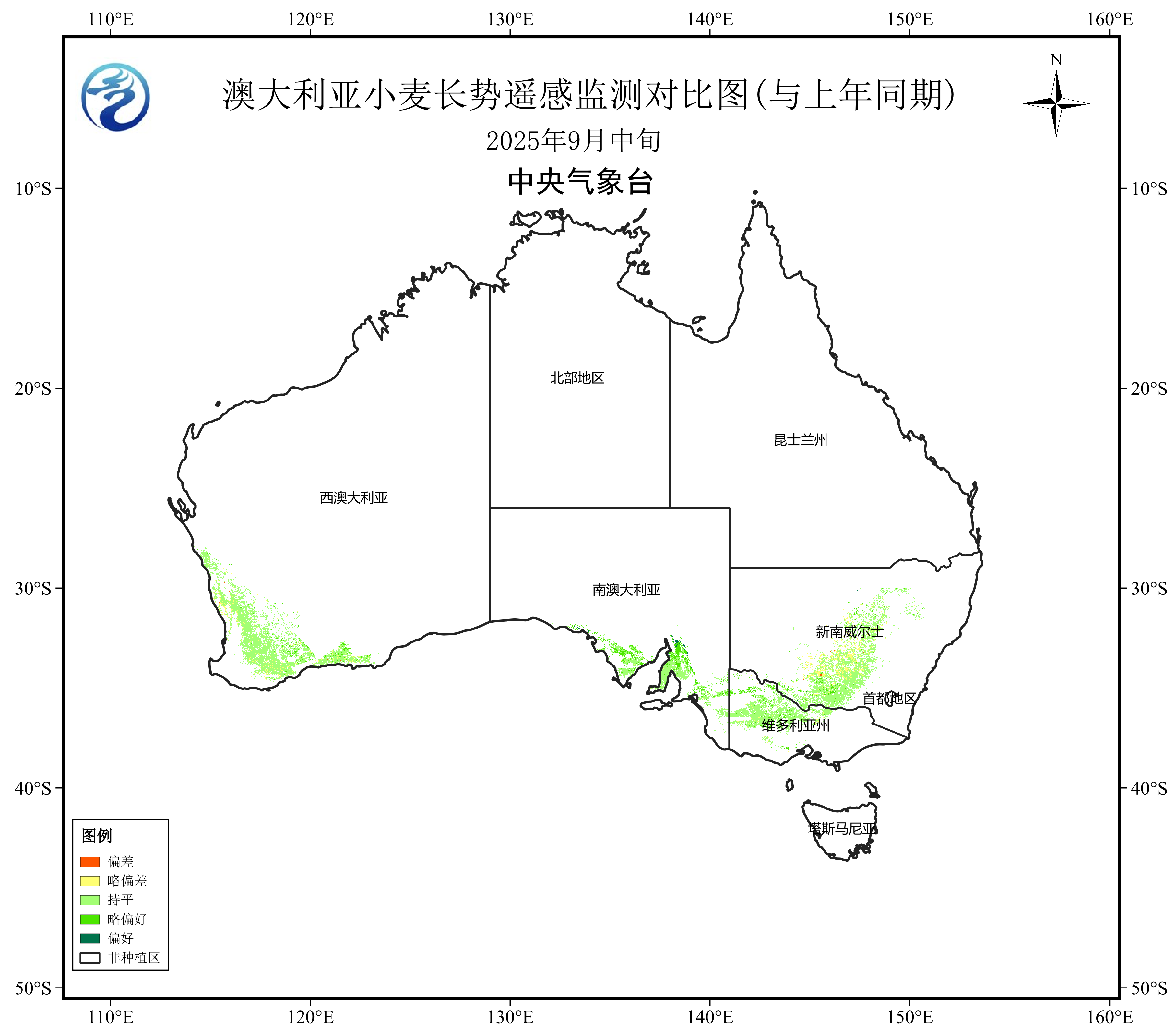 图12 2025年9月中旬澳大利亚小麦长势遥感监测