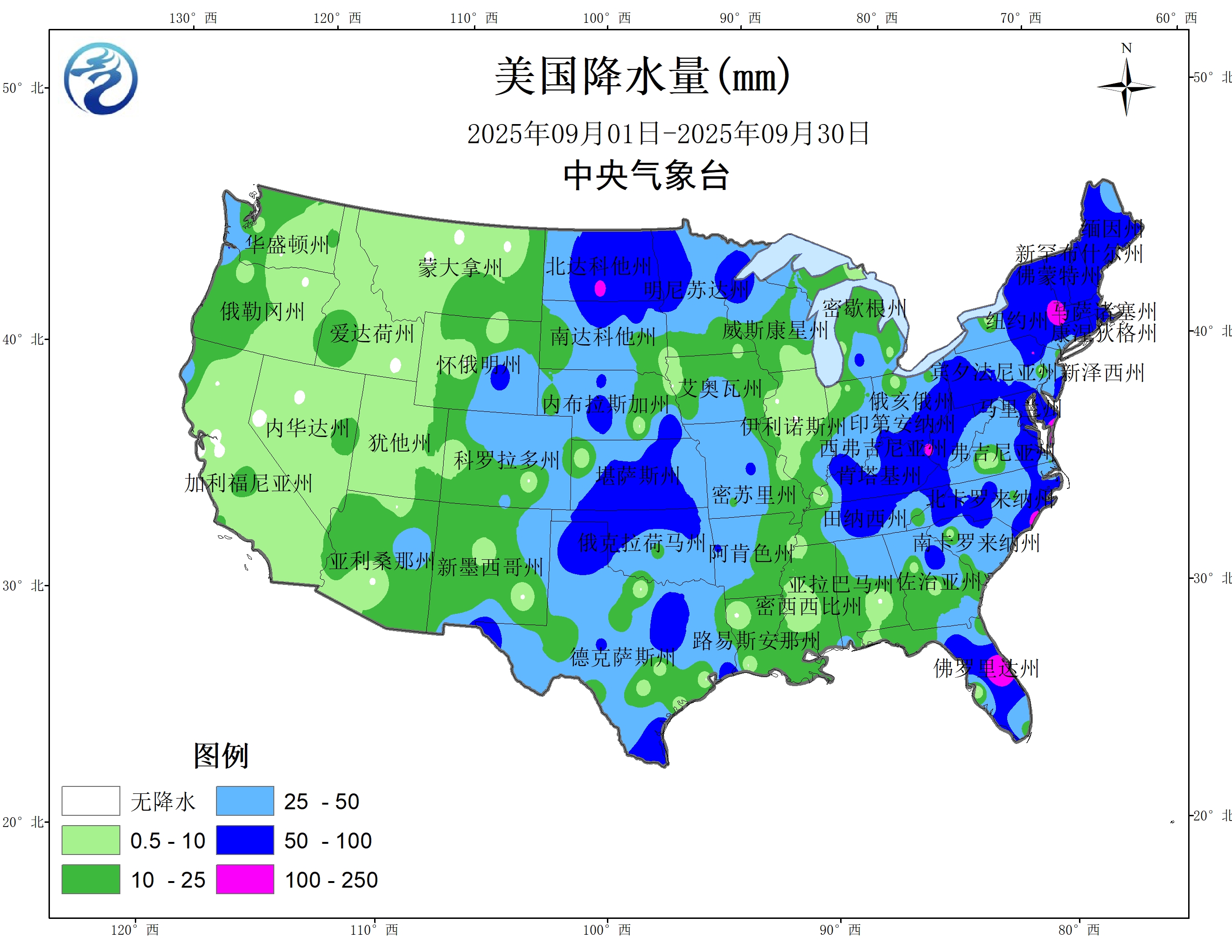 9月美国水热条件利于秋收秋种 印度降水充足利于水稻产量形成
