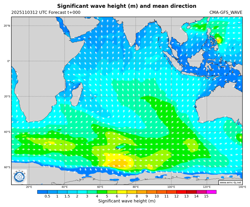 印度洋-浪高浪向叠加图
