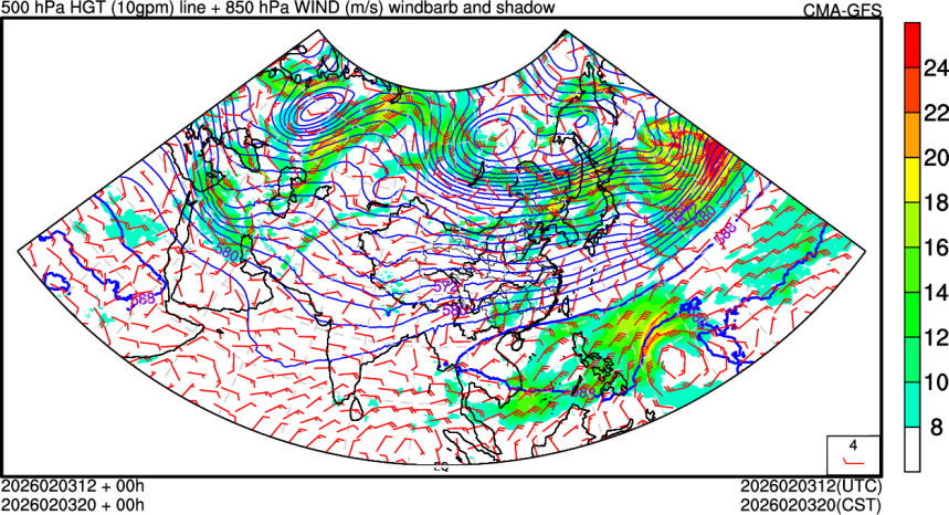 500hPa高度场+850hPa风场