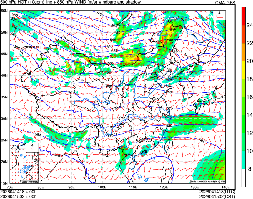 500hPa高度场+850hPa风场