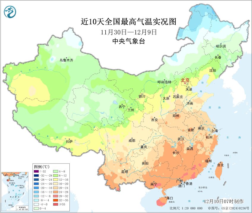 近10天全国最高气温实况图