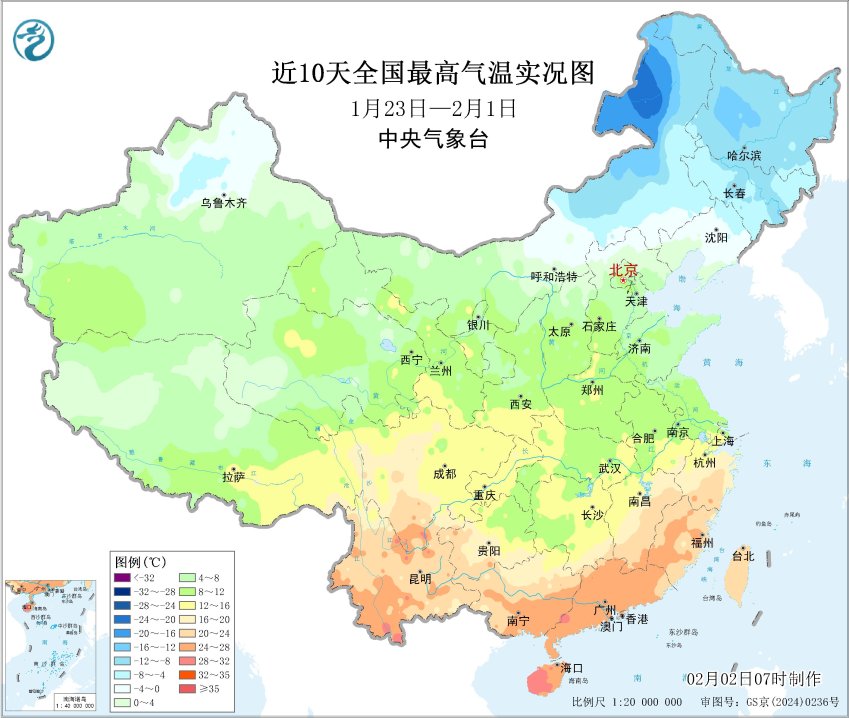 近30天全国最高气温实况图