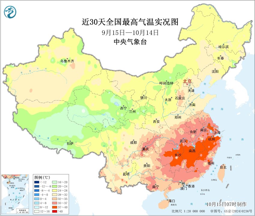 近30天全国最高气温实况图