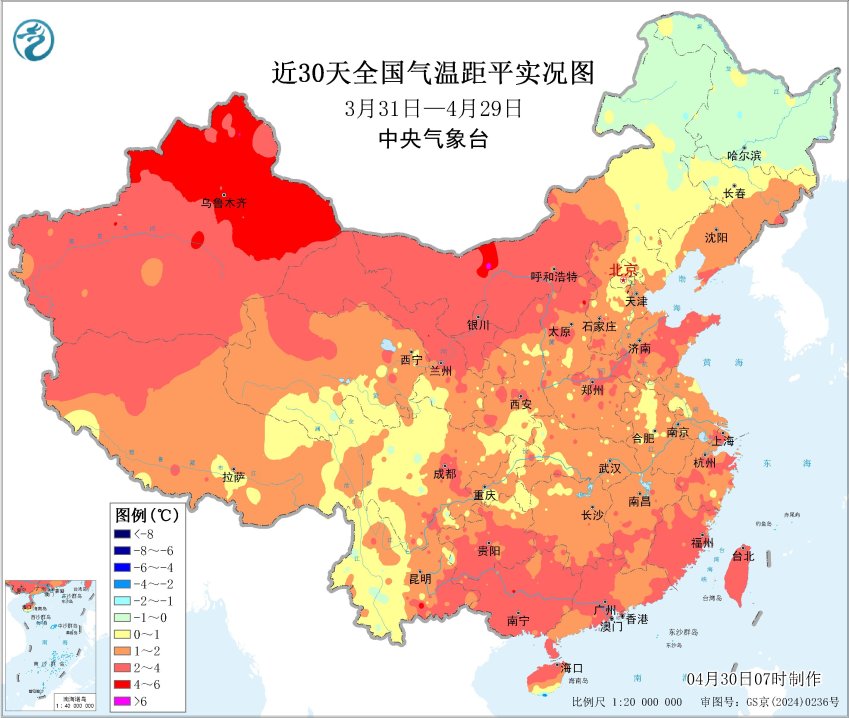 近30天平均气温距平