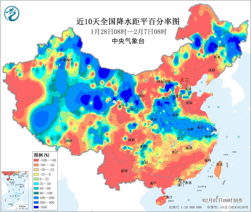 近10天降水距平百分率