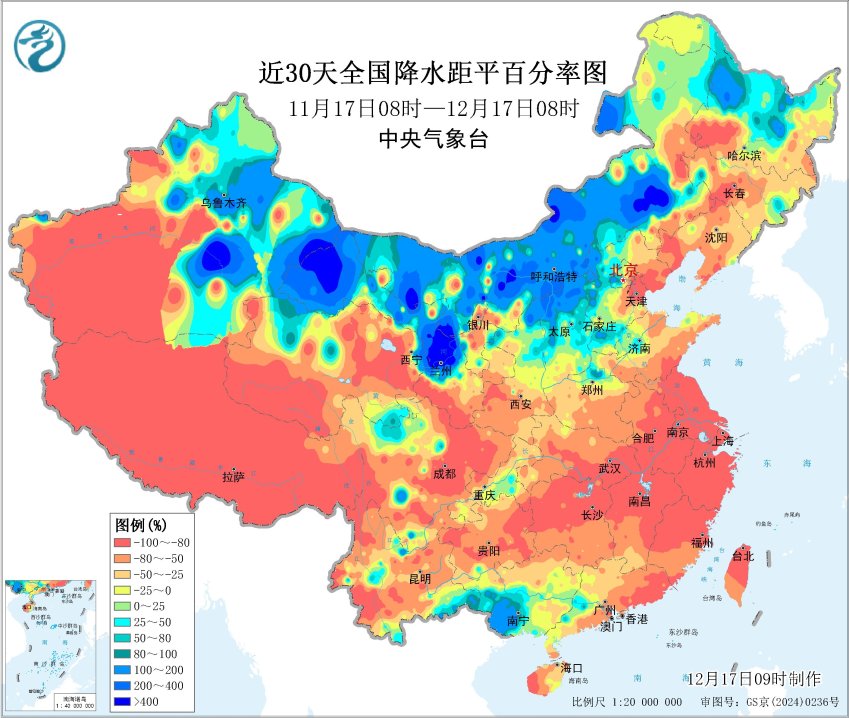 近30天降水距平百分率