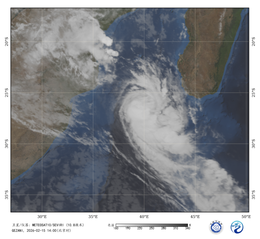 图1 卫星红外监测图像(北京时间2026年2月15日14时00分)