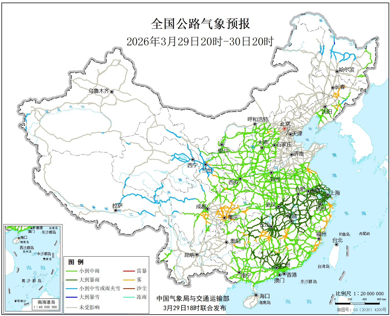 中国气象局与交通运输部2026年03月28日联合发布全国主要公路气象预报