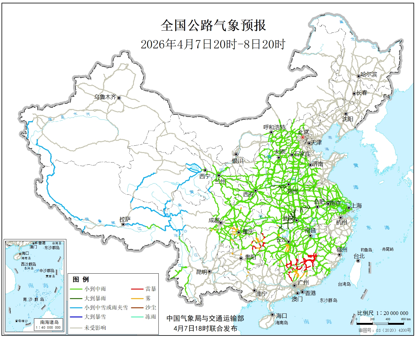 中国气象局与交通运输部2026年04月07日联合发布全国主要公路气象预报