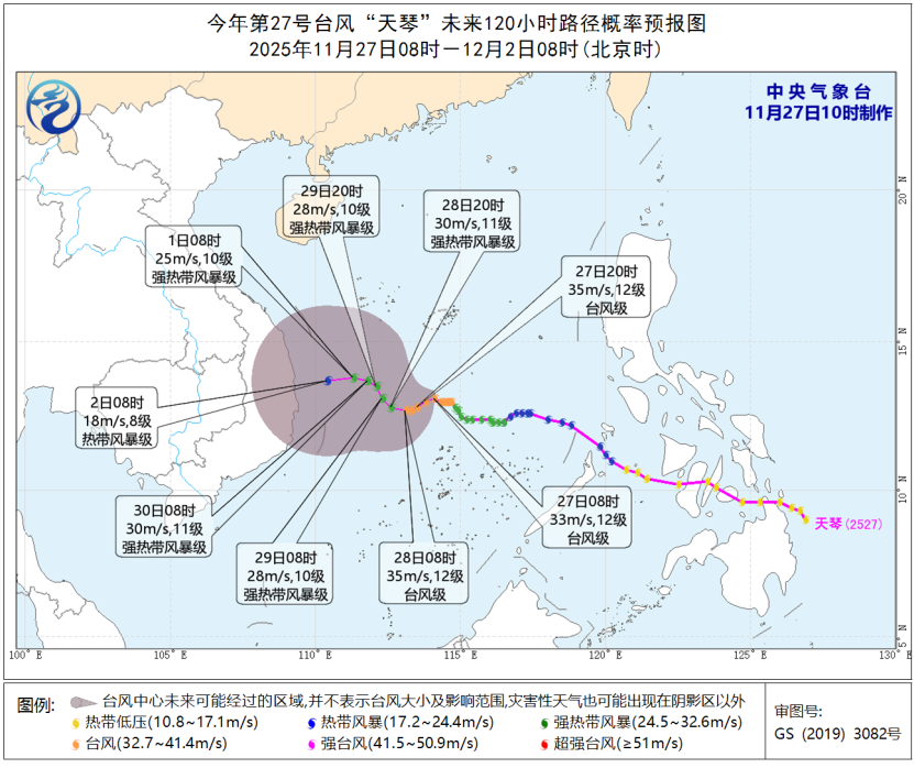 中央气象台11月27日10时继续发布台风蓝色预警: