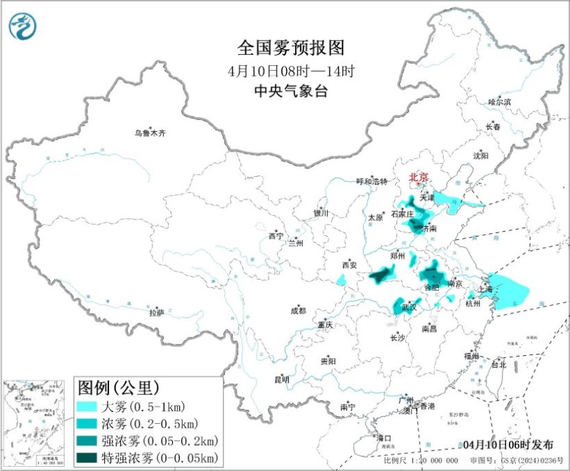 11日夜间至12日白天,黄海中西部和南部海域将有能见度不足1公里的大雾;此外,11日夜间至12日上午,河南东部、重庆西部、福建东部等地的部分地区有大雾天气,局地有能见度不足500米的浓雾。中央气象台4月11日18时发布大雾黄色预警。