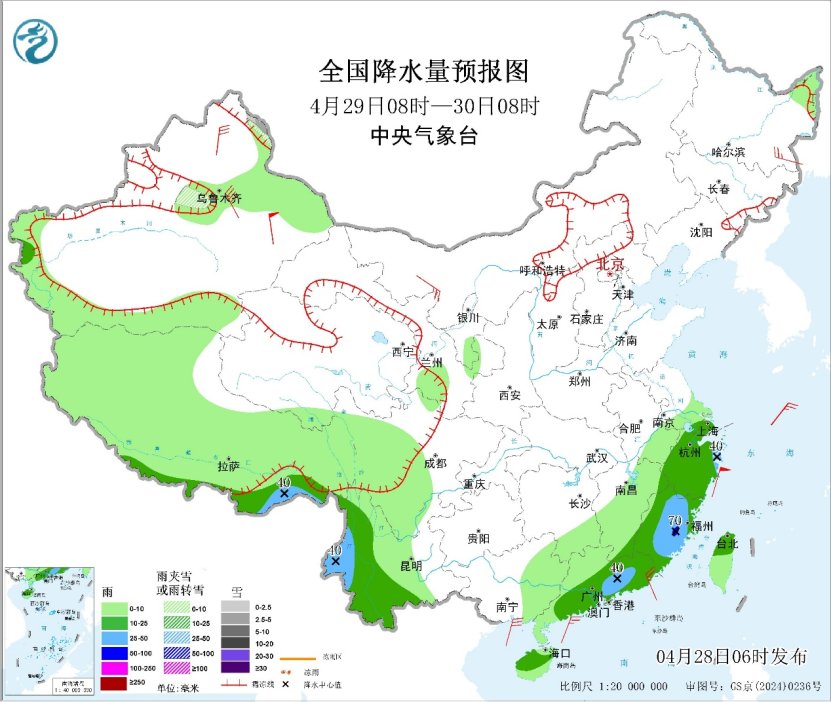 昨日(4月25日),我国大部地区天气较好,降水主要分布在东北地区及新疆、四川、云南、海南岛等地,四川南部、云南中西部、海南岛南部及辽宁中部、吉林中部等地部分地区出现中雨或大雨、局地暴雨,海南岛五指山、乐东局地大暴雨;长江中下游及其以南地区雨水暂歇,气温明显回升,广西、广东部分地区白天最高气温达到30℃以上。