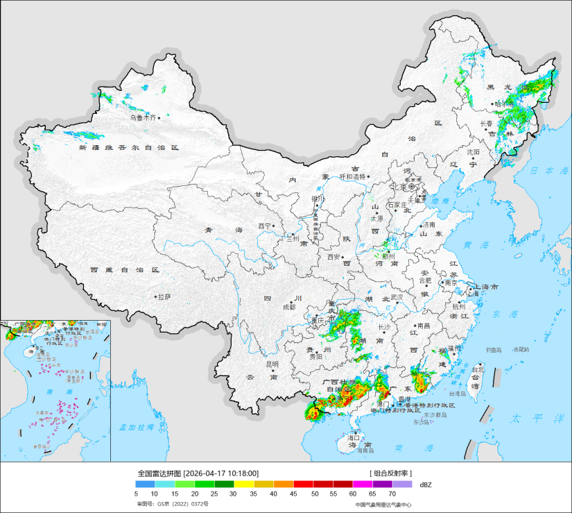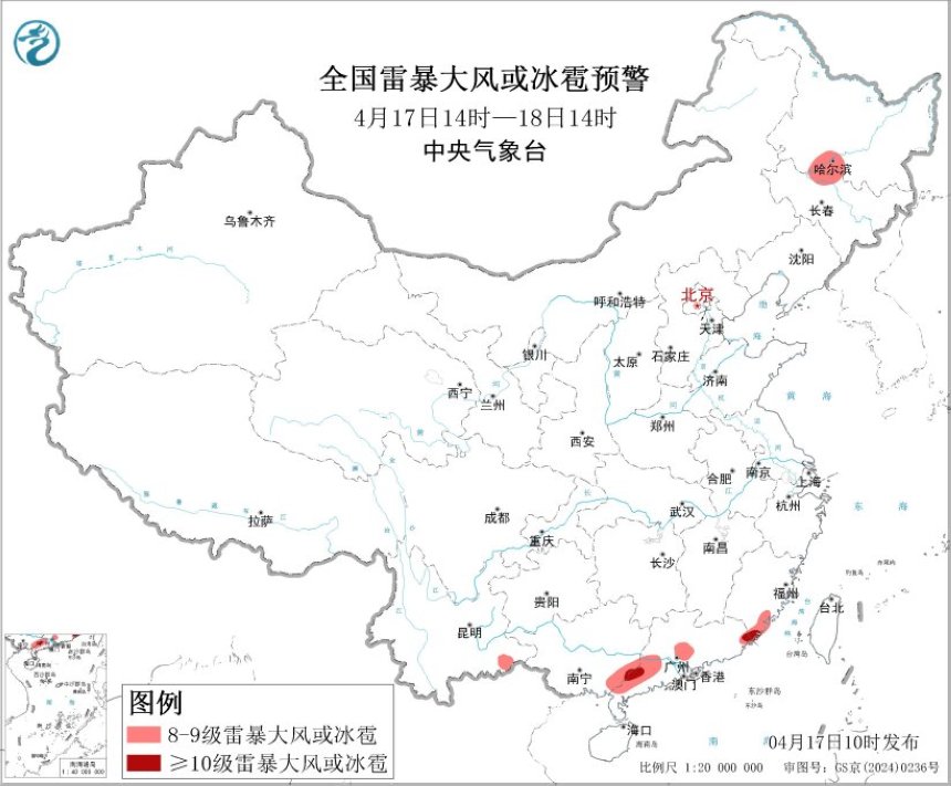 中央气象台4月17日10时继续发布强对流天气蓝色预警