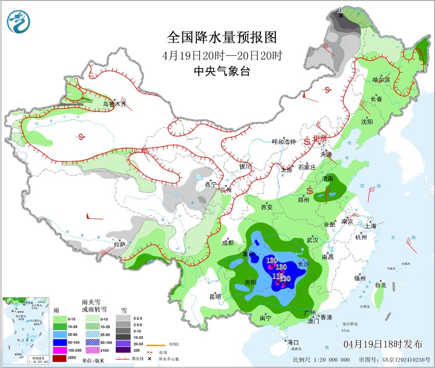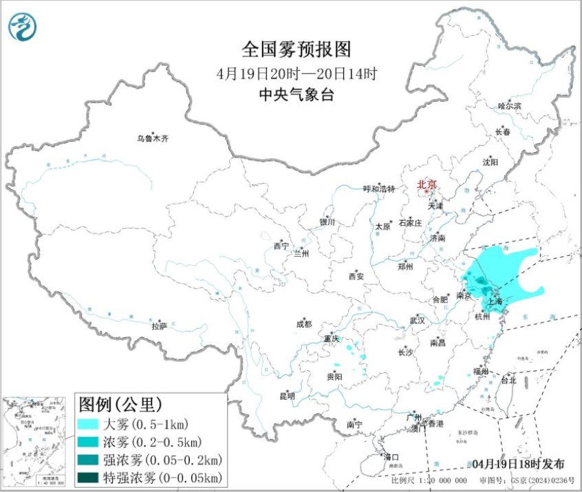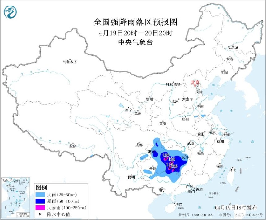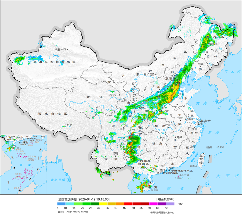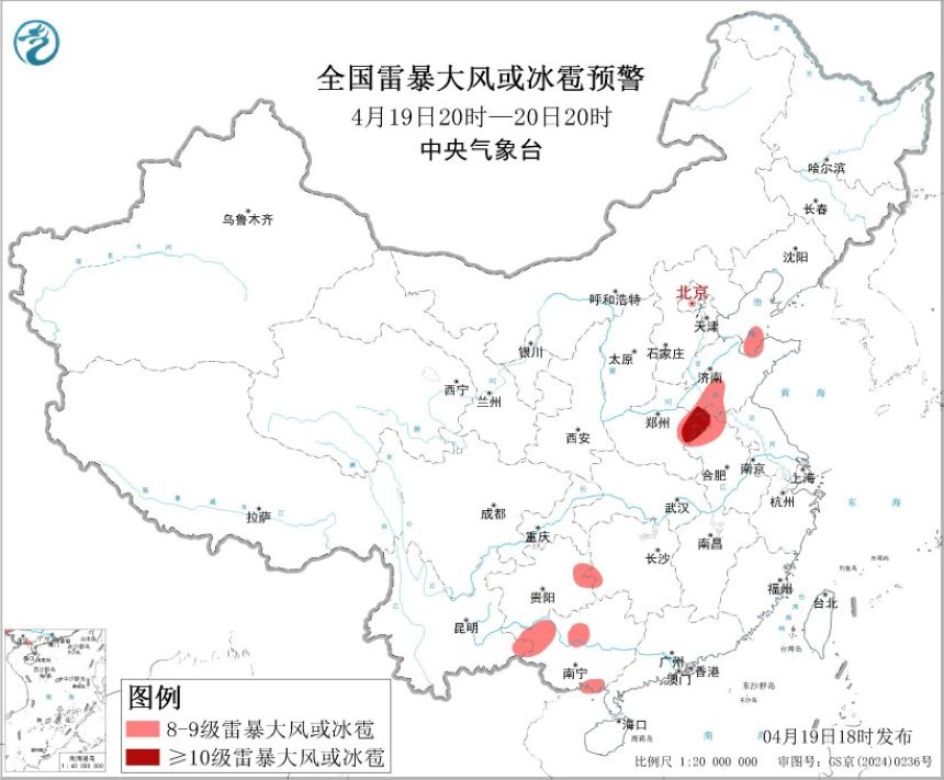 中央气象台4月19日18时继续发布强对流天气蓝色预警
