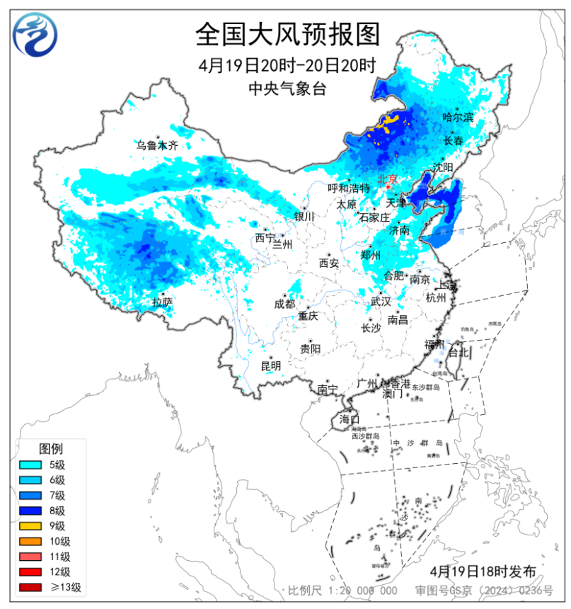 中央气象台4月19日18时继续发布沙尘暴蓝色预警