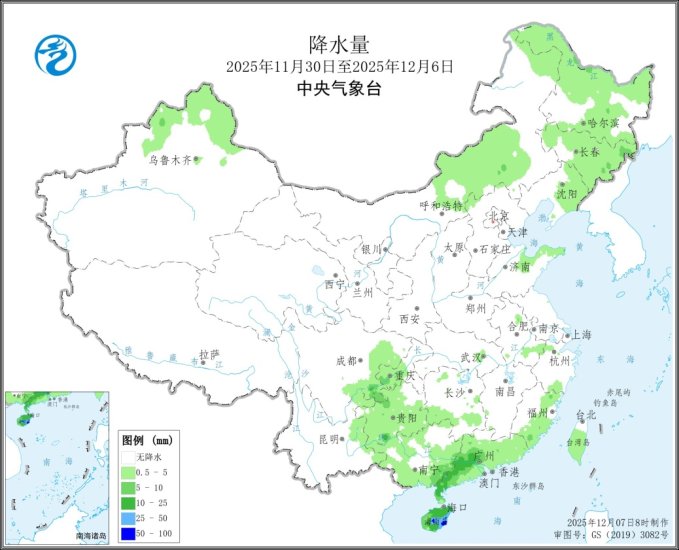 本周(2025年11月30日-12月6日),全国大部农区气温接近常年同期或偏高1~2℃,新疆北部、江汉大部、江南中部和西部、华南中部及河南南部等地偏高2~4℃;黑龙江北部、吉林东南部、辽宁东部、内蒙古中东部等地偏低1~4℃(图1)。全国大部农区无降水或降水量不足5毫米(图2),较常年同期偏少5~9成,仅广东西部、海南受台风影响,降水量有5~50毫米,局地有50~100毫米;东北地区北部、内蒙古东北部、新疆北部等地部分地区积雪深度为5~20厘米,局地20~50厘米(图3)。全国大部农区日照时数接近常年同期或偏多3成至2倍,仅广东西南部、广西南部、海南偏少3~8成(图4)。