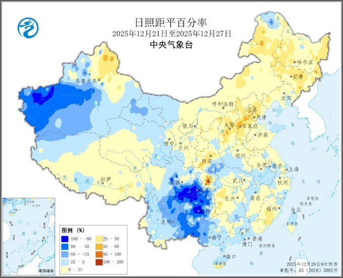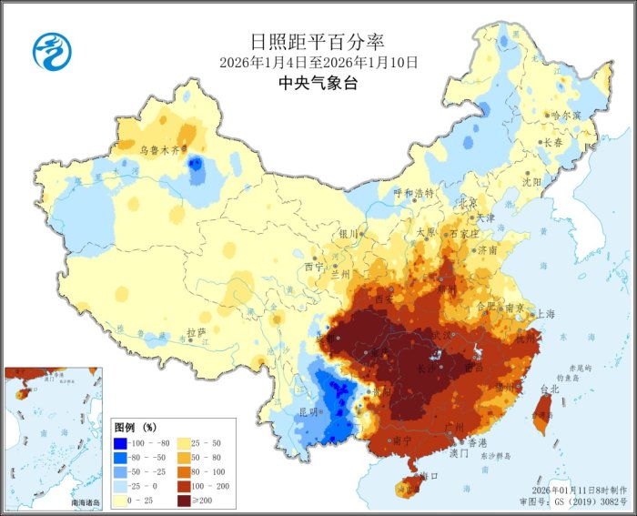 图4 全国日照距平百分率
