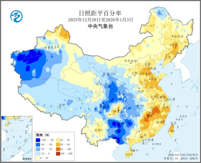 图3 全国日照距平百分率