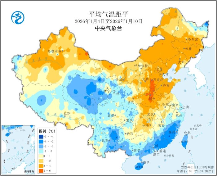 本周,北方冬麦区大部光照充足,气温偏高,农田墒情适宜,气象条件总体利于冬小麦苗情转化及安全越冬。1月8日-10日,受较强冷空气影响,内蒙古、华北、黄淮及甘肃西部、宁夏北部、陕西北部、辽宁南部等地出现7~9级风,气温普遍下降6~10℃,内蒙古中东部、东北地区等地出现小到中雪,局地大到暴雪,大风降温降雪天气增加畜牧业和设施农业防寒保暖成本,局地棚圈设施受损。南方大部农田水热适宜,光照充足,总体利于油菜、在地蔬菜及经济林果等生长发育。