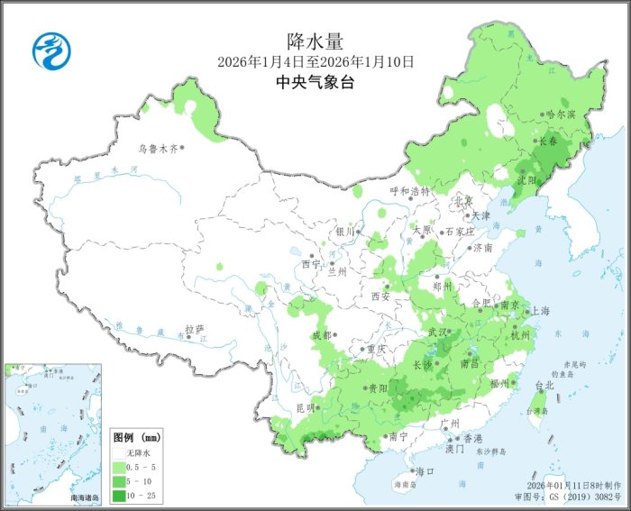 本周(2026年1月4日-2026年1月10日),全国大部农区气温接近常年同期或偏高1~2℃,其中东北地区中南部、内蒙古中东部、新疆北部、华北大部、黄淮、江汉中部等地偏高2~4℃;华南大部、云南东部、贵州西部等地偏低1~4℃(图1)。本周,内蒙古中东部和东北地区出现小到中雪,其中内蒙古东南部、辽宁中东部、吉林东南部等地大到暴雪;湖北东南部、湖南东北部和南部、广西东北部、贵州东南部和云南南部等地部分地区降水5~10毫米,全国其余大部农区降水不足5毫米或无降水(图2)。与常年同期相比,东北地区大部和内蒙古中东部等地降水偏多5成至4倍,局地偏多4倍以上,全国其余大部地区降水接近常年同期或偏少3~9成(图3)。本周,除云南东部日照偏少3~9成外,全国大部地区日照时数接近常年同期或偏多,其中华北南部、西北地区东部、黄淮、江淮、江汉、江南、华南和西南地区东部日照时数较常年偏多3成至2倍,湖北西南部、湖南、江西西部、广西东北部、重庆、四川东北部、贵州东北部偏多2倍以上(图4)。