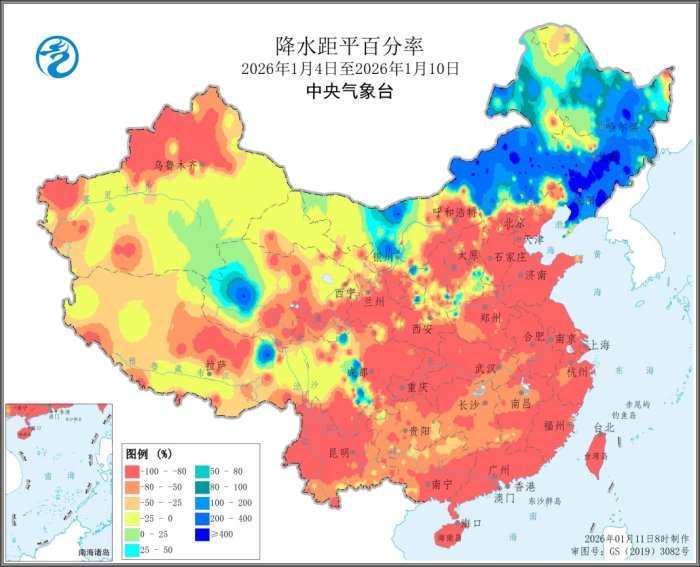 图3 全国降水距平百分率