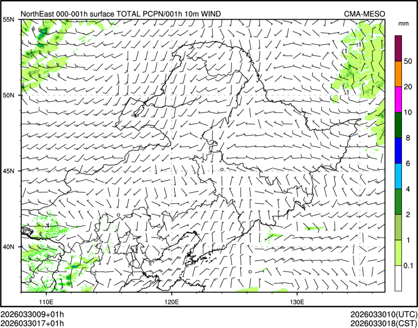 1h降水+10m风场
