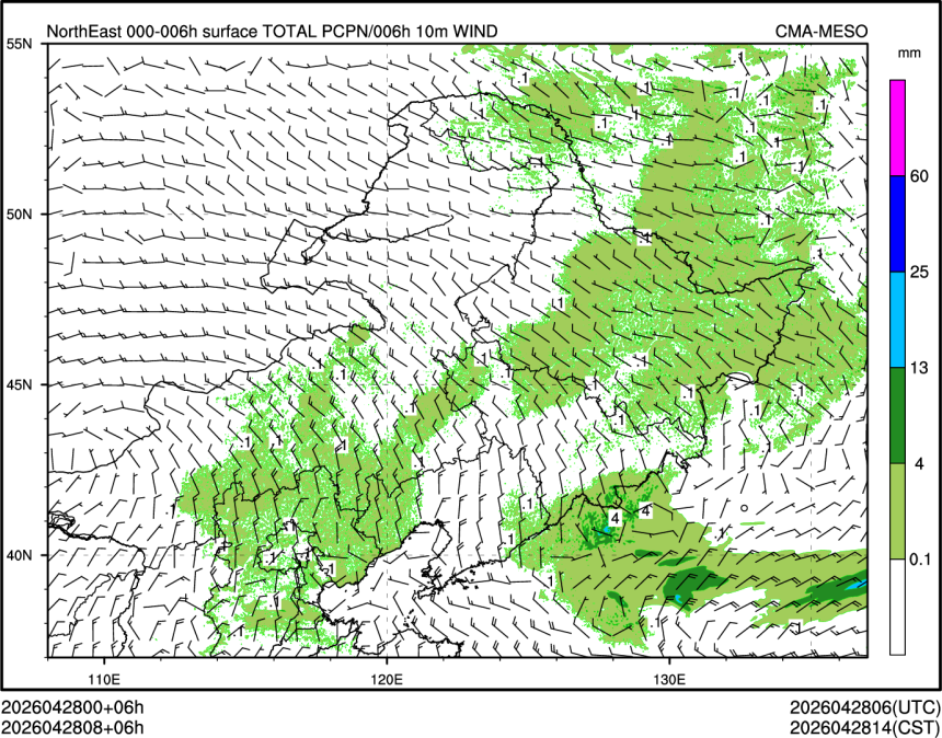 1h降水+10m风场