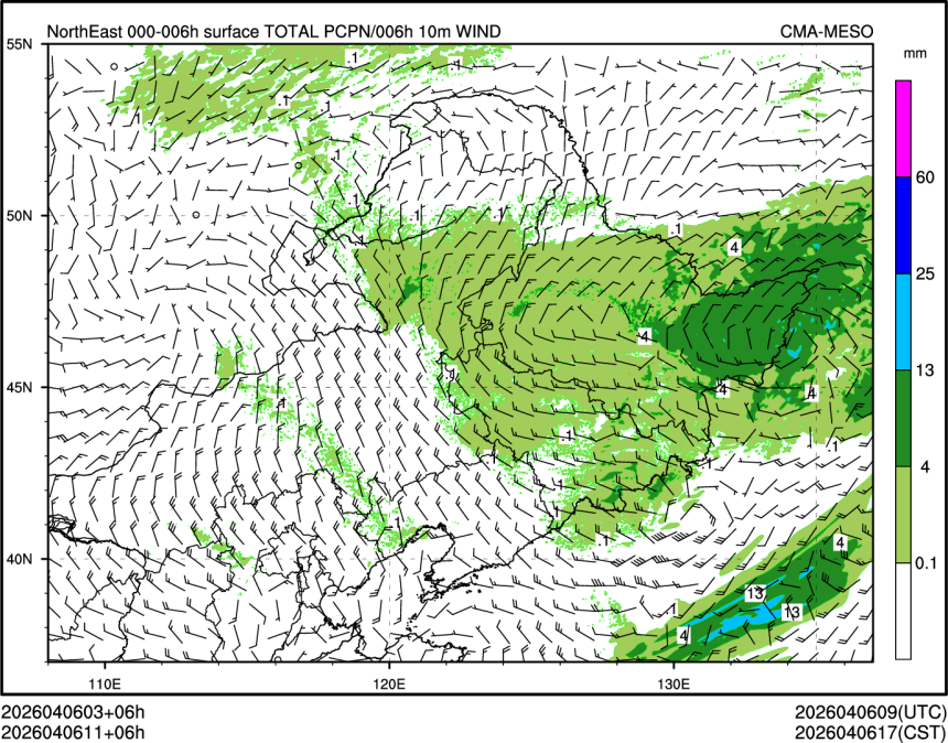 6h降水+10米风场