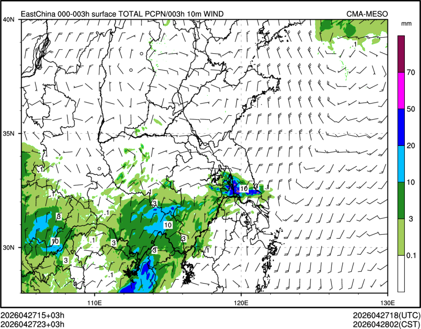 3h降水+10米风场