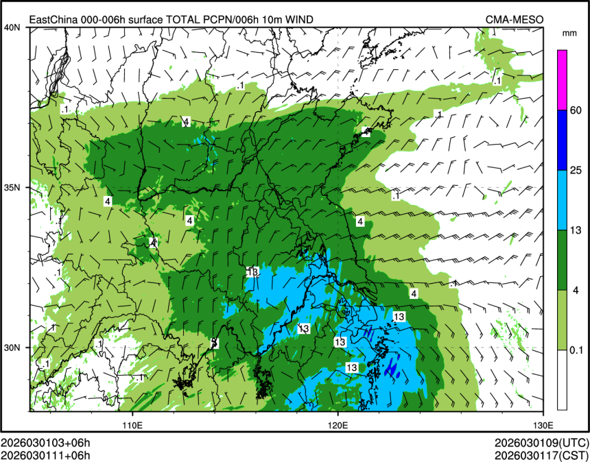 6h降水+10米风场