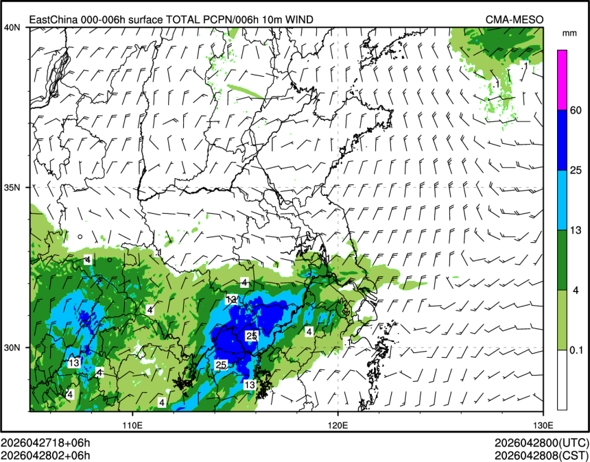 6h降水+10米风场