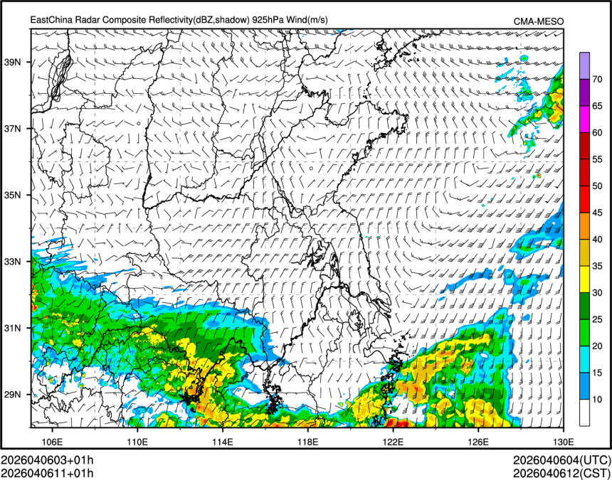 1h降水+10m风场